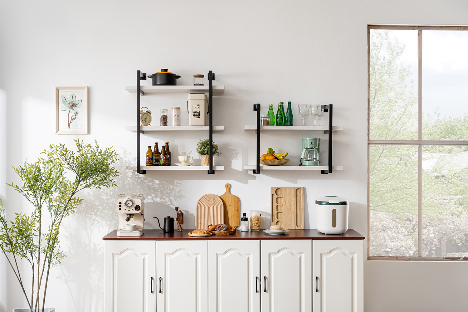Newmetal Utility Shelving Unit, Wall-Mounted Floating Shelf, 3-Tier Storage Hanging Rack, Industrial